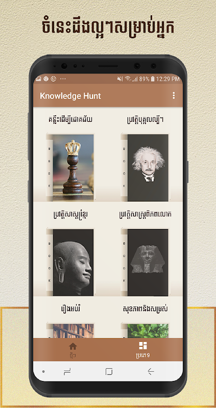 Khmer Knowledge Hunt is the best app build specific for Cambodia people. If you are looking for an app that can help you to gain knowledge everyday, you come to the right place.