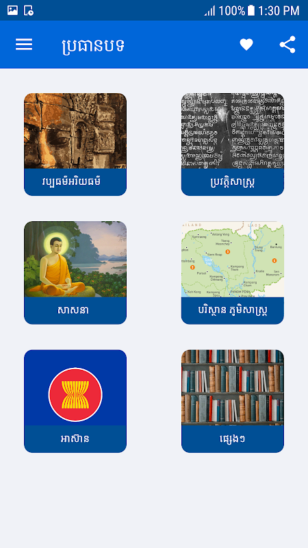 Khmer Knowledge is offline application and include Khmer culture, Asain, etc. has many benefits for all kind of Khmer people to know and especially high school students, university student. And can make all of you get higher education.