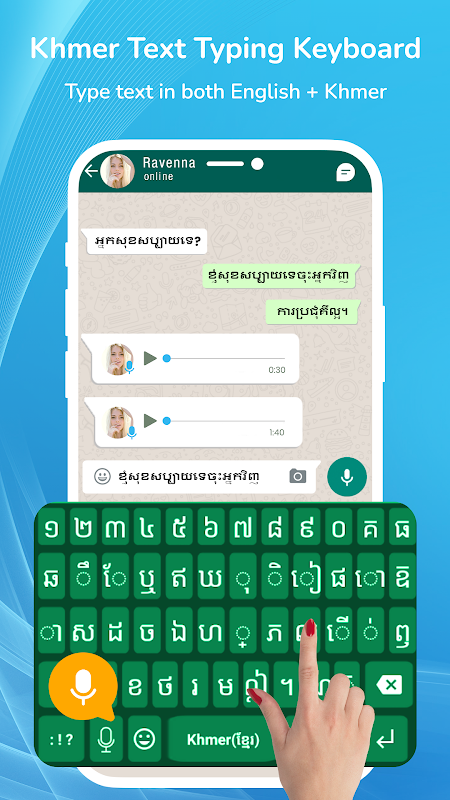 Also in this Khmer keyboard, you have the ability to write your message using voice recognition. Just say what you want and this free and smart Khmer keyboard will write it instantly.