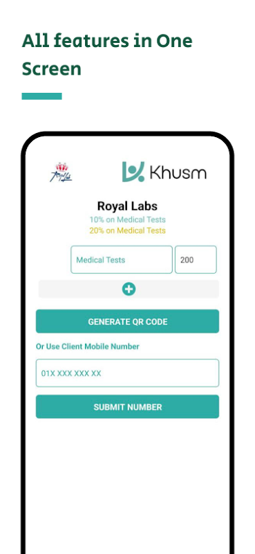 With Khusm Pos, you can expand your network of clients by being one of Khusm's medical providers. Khusm POS app is a friendly user application that your medical organization can use with Khusm user to give different discounts on your medical services or products.