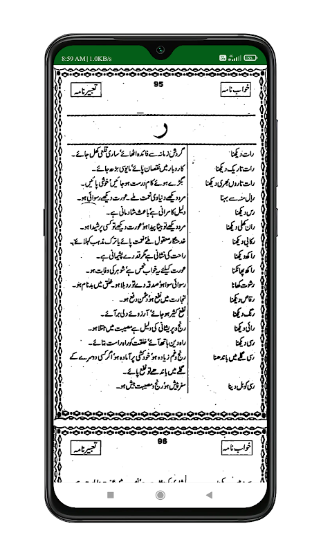 This is a Khwabon Ki Tabeer Urdu Book app (خوابوں کی تعبیر کی کتاب) you can also call it Khwab Nama (خواب نامہ) or Tabeer Nama (تعبیر نامہ).