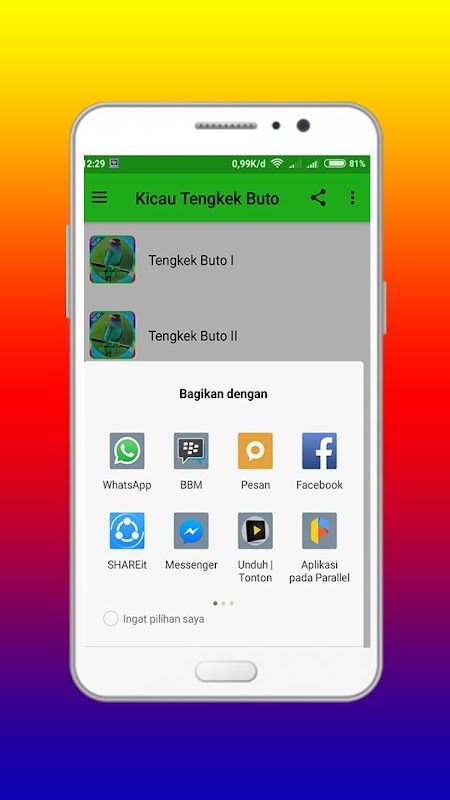 Aplikasi ini bisa digunakan sebagai pancingan untuk memasterkan burung tengkek buto anda.
