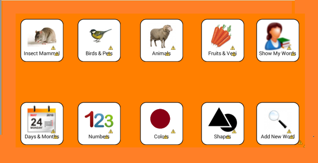 Kids will see the picture of the selected category like Fruit, Vegi, Animal , Number