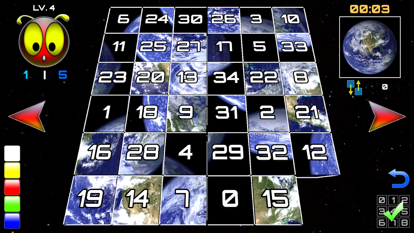 An image will be divided in cubes and numbered then randomly scattered on the board. Try to solve and correct the image by sliding the numbered cubes using the empty space. Complete the puzzle by aligning all the cubes numbers until the image is clearly correct. There are 4 different levels to chose from. Can you beat your time or finish the puzzle with the least moves?