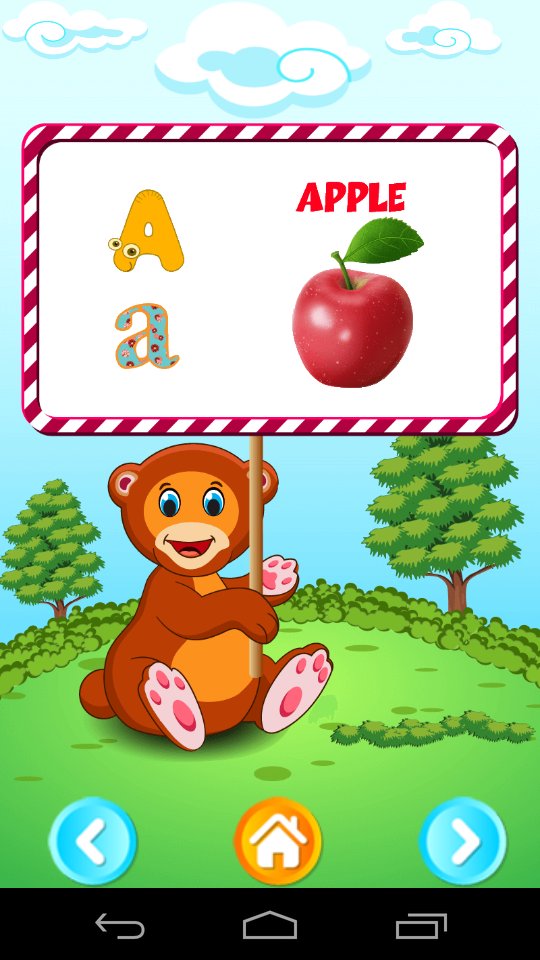 App adopts traditional educational style learning for toddlers, preschoolers, kindergarten, and early school age children. Two year old and above children can practice their skills reading, pronouncing and understanding as well as enjoy the sounds