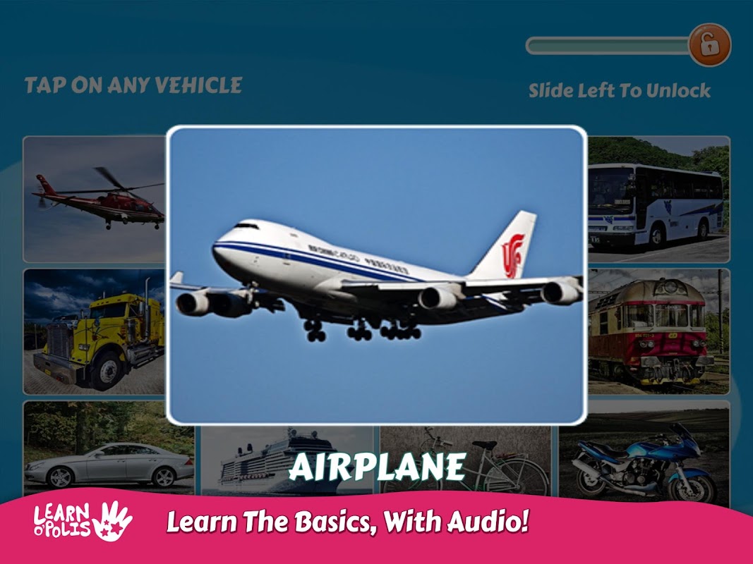 DOWNLOAD the app Kids Learn Vehicles and educate your kids in an enjoyable and stress-free way! Once the app Kids Learn Vehicles is downloaded, it can be played offline unlimited.