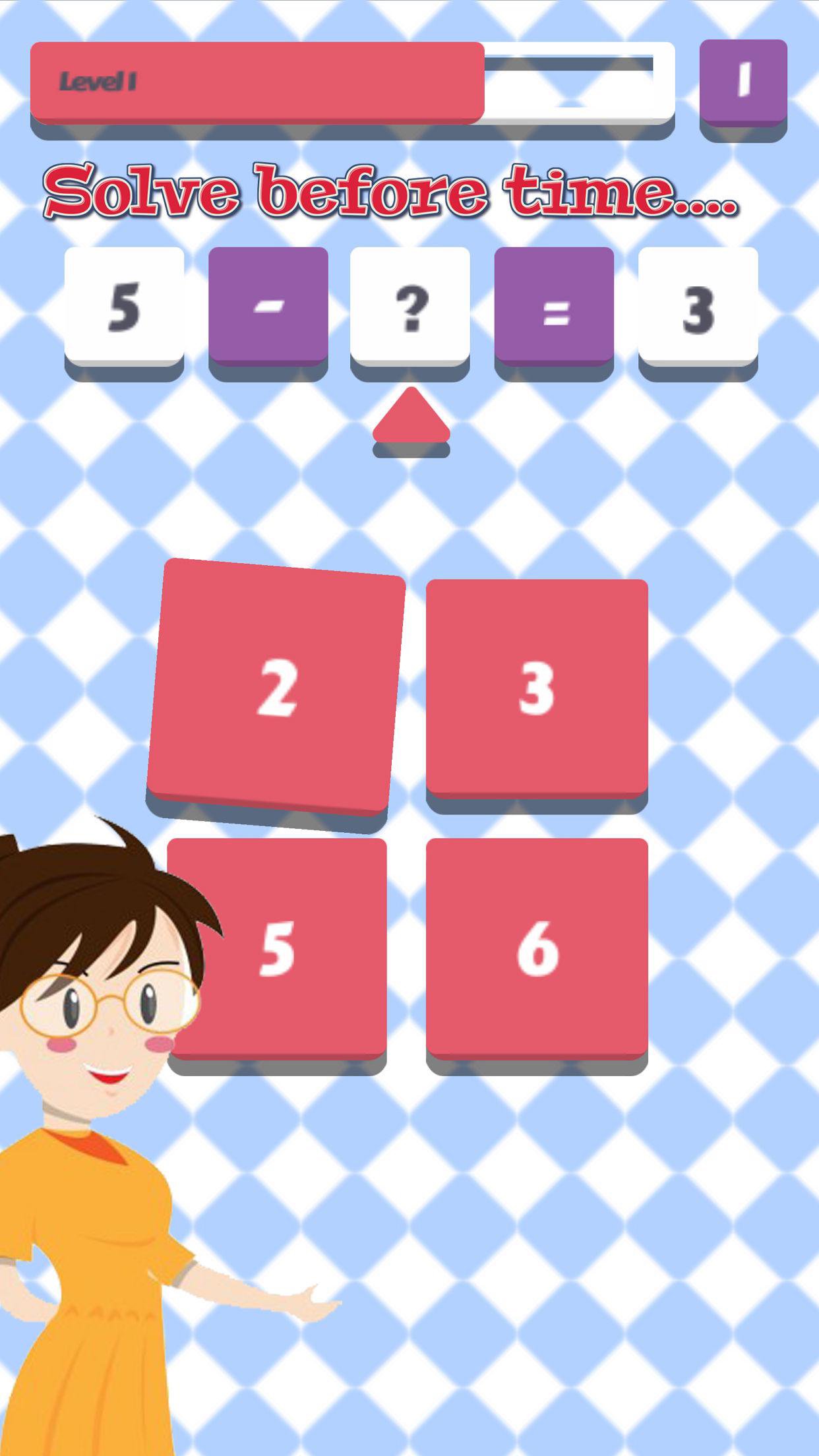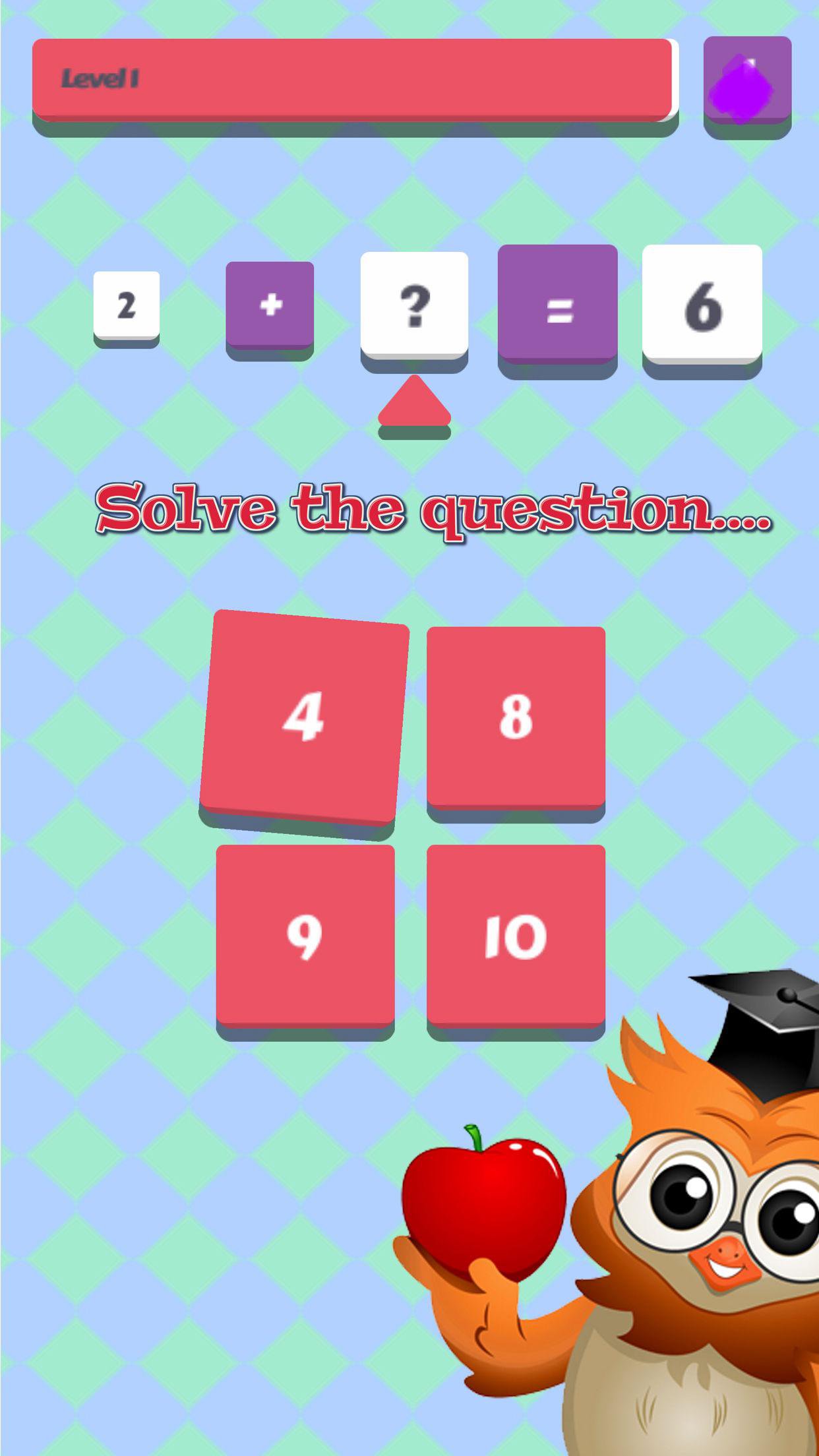 This game teaches the basic maths to kids in a very easy manner. Answer simple mathematical questions of addition, subtraction, multiplication and division. It will also enhance the problem solving of your kids within a limited time. Add, subtract, multiply and divide the numbers in the mix level within a limited time spam. The time will get shorter as the game progresses. It's an infinite game