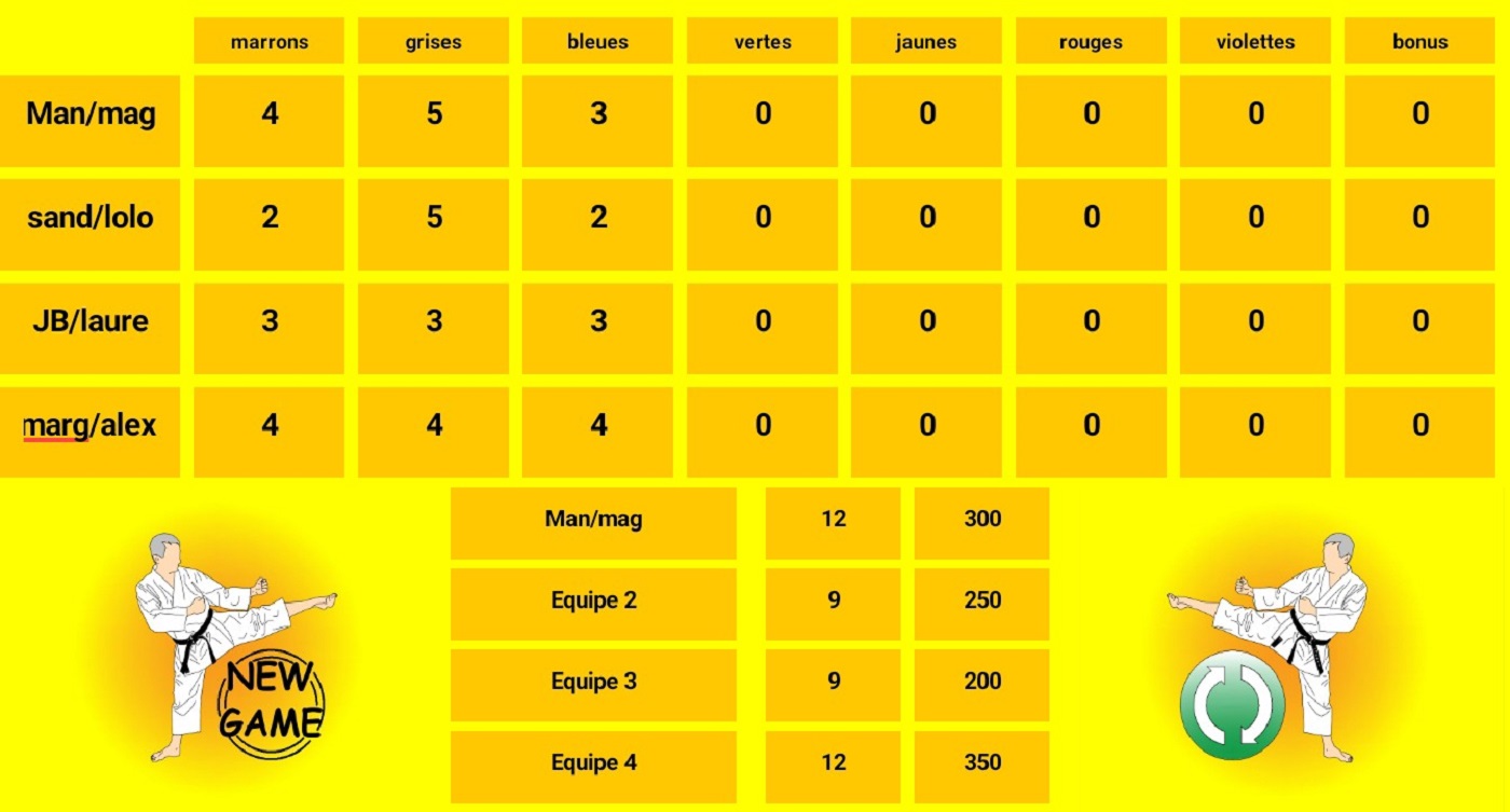 "Kika Scores" allows you to manage the points and scores of "Kihons Karate".