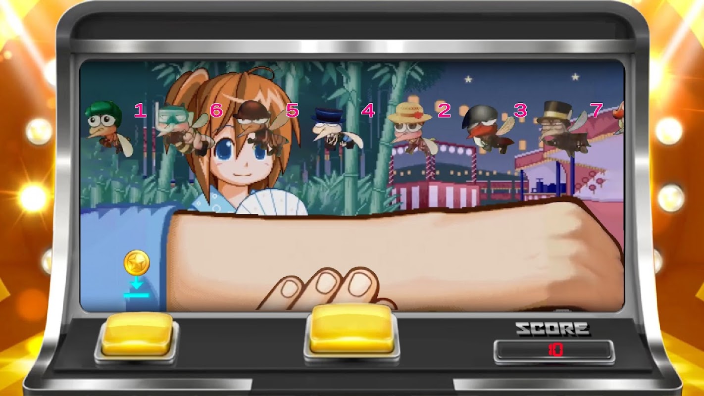 Drop virtual coins into the slot – each coin will attract more mosquitoes to land on your hand.