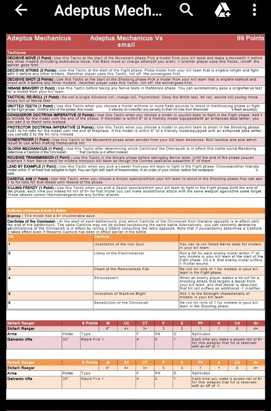 This application helps you create and manage your kill teams for the Warhammer 40000 skirmish game : Kill Team.