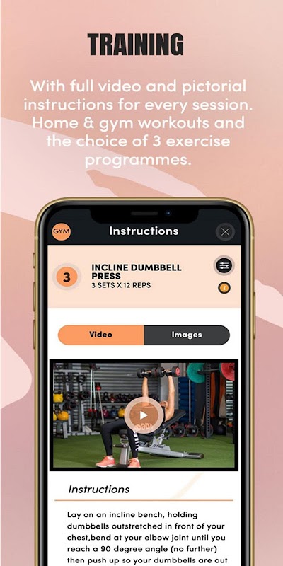• Daily training program (weights and cardio) including video tutorials featuring both home & gym exercises.