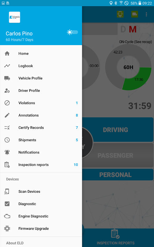 Kinesis ELDs FMCSA-registered Electronic Logging Device (ELD)