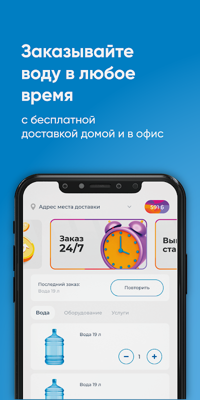 Download the application "KING-AQUA Yakutia" on your smartphone and order water 24/7. You will be able to repeat the order with the click of a button, see the entire purchase history and keep abreast of all the company's promotions.