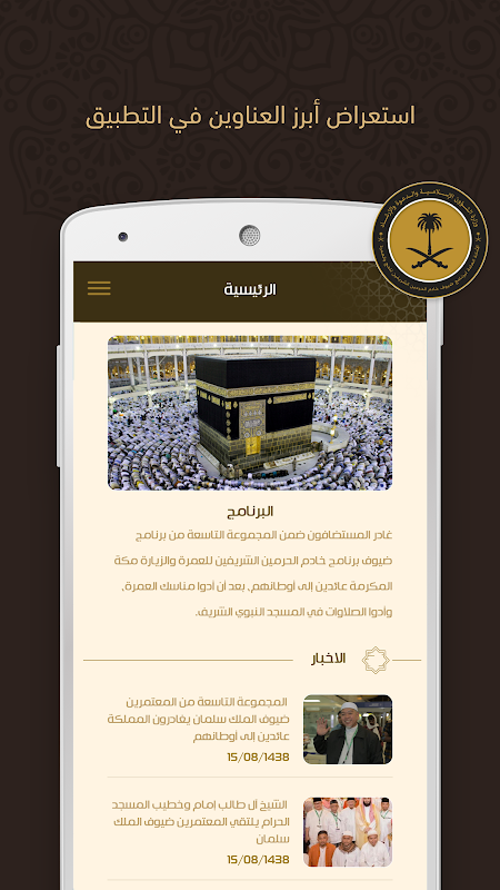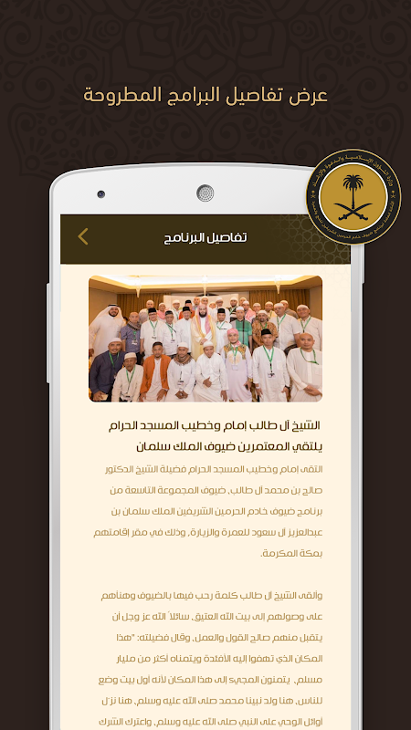 The KING’s GUESTS APP provides the King’s guests with tutorials, latest news, videos, photographs about Hajj and Ummrah rituals. It also provides them access to the latest editions of the magazine of the General Secretariat in a digital format, helping them learn the latest news that is relevant to their journey and the facilities offered to them within the program.