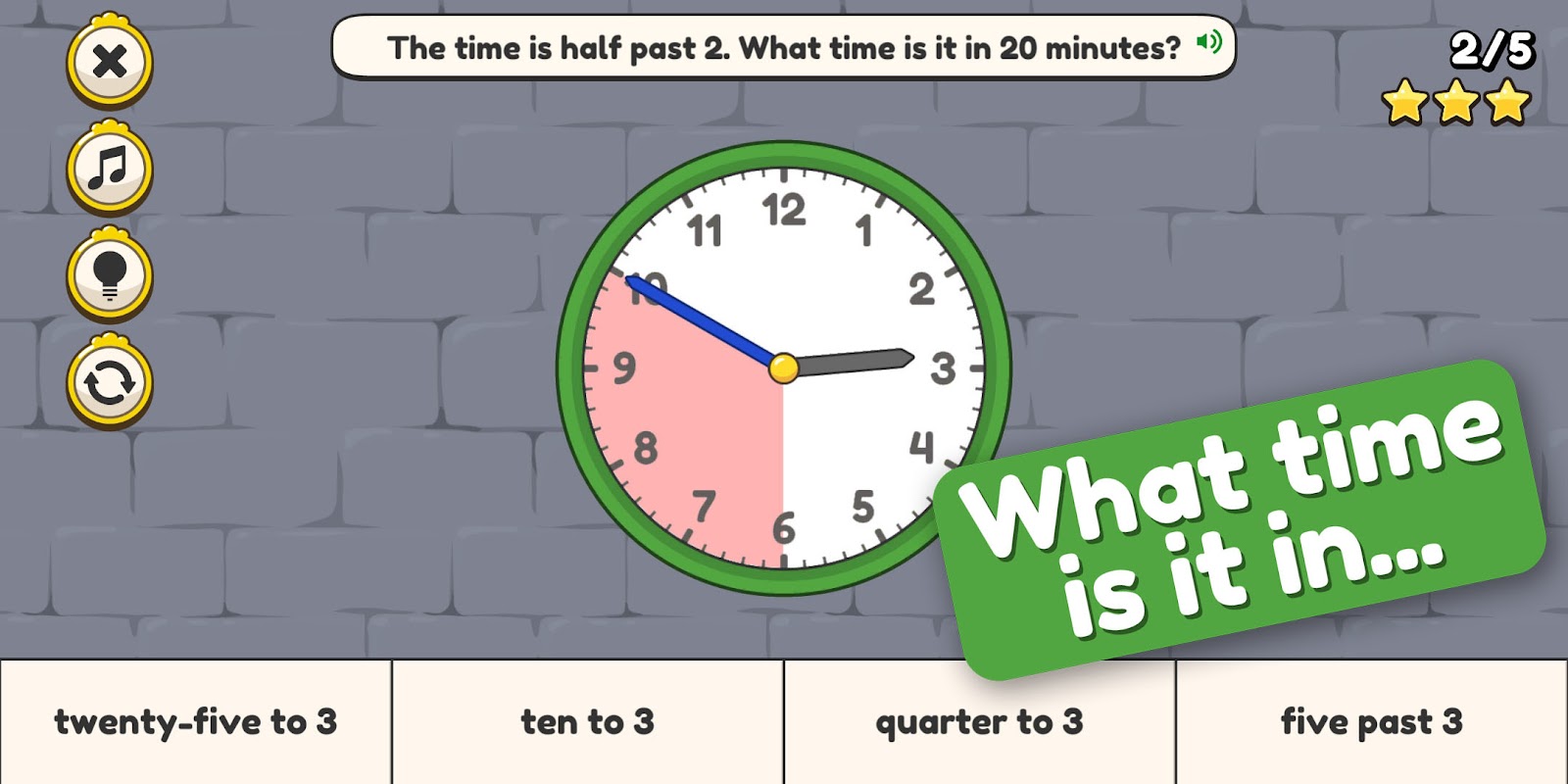 This app contains more than 50 different exercises on analog and digital clock. You get to practice both reading the clock and setting the time. The difficulty of the exercises is gradually increased, starting with whole hours and continuing with half hours, quarter hours and so on. If it’s too challenging, just press the Hints button to get help with the time expressions. The app also contains exercises on elapsed time, such as ”What time is it in 20 minutes?”. In the final category you can test your acquired skills with a mix of different styled clocks.