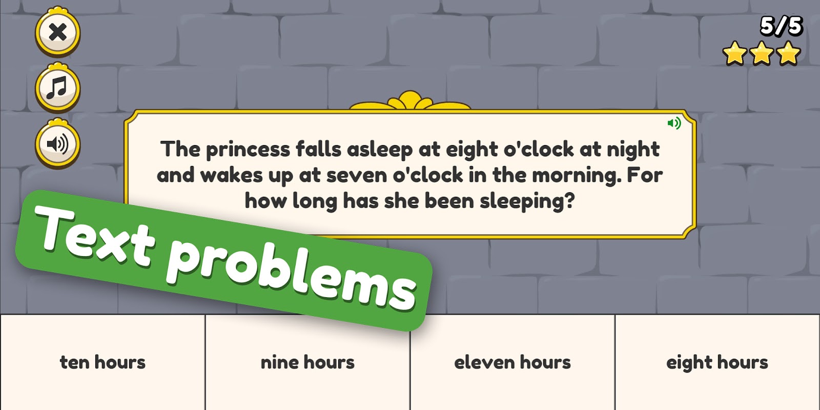 In addition to the many exercises, there is also an experimental mode where the relationship between the clock and the time of day is illustrated with the passing of the sun and moon across the sky. You can freely drag the hands of the clock and see how the sky changes and also get the time read out load.