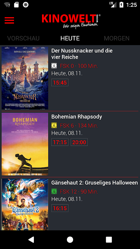 Our new, native theater app puts you with simple, intuitive gestures in an attractive and modern presentation in a few steps to your favorite places. Enjoy the latest trailer of the current film program and always be up to date. Register your personal account and manage your bookings easily and directly in the app.