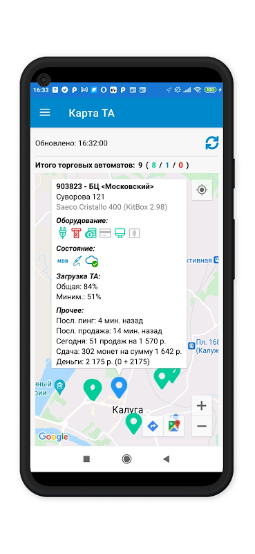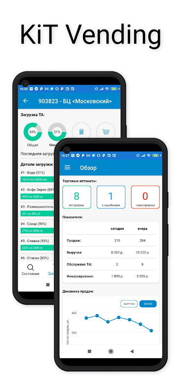 The KiT Vending mobile application is an indispensable assistant for the owner or operator of vending machines/coffee points.