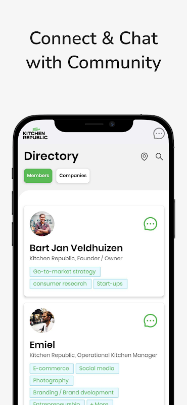 - Network and chat with members within the Kitchen Republic Community
