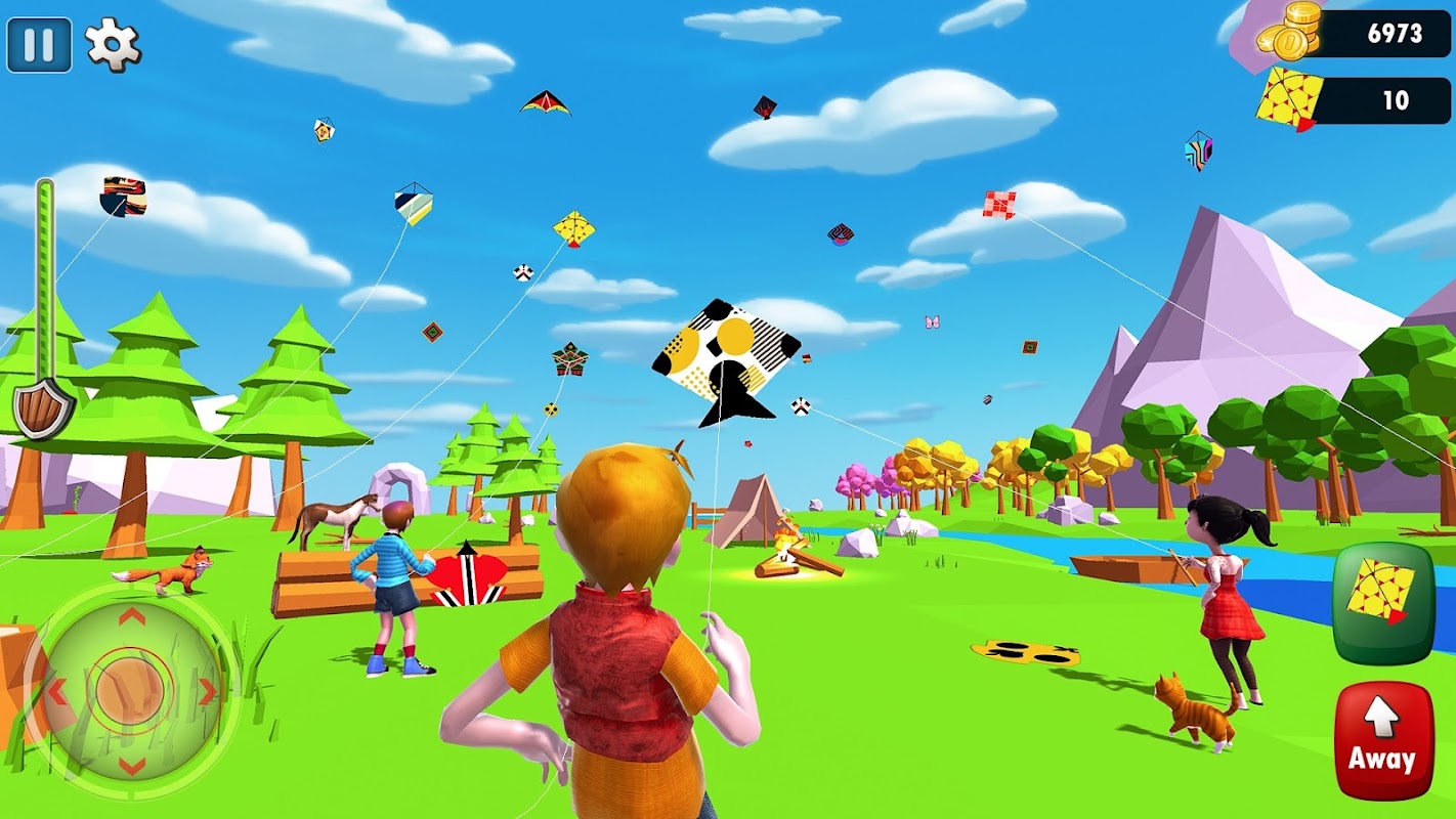 Kite Game 3D - Kite flying is a traditional sports game with Kite fighting around the world for kite flyers and kite game lovers. Included Beautiful kite designs around the world like Fighter kites name as Guda kite, Pan kite flying, Patang kite game, cometa kite and pipa kite, layan layang kite, papalote kite and many more kite with Traditional Kite designs. In Kite Game 3D - Kite flying you need to cut your opponent's kite to get some coins to buy your favorite kite design also you can catch (Loot) opponent kite to get more coins. Kite Game 3D - Kite flying is a traditional sports game like other Traditional games around the world ludo game, gilli danda game, pipa game, tic tac toe etc.