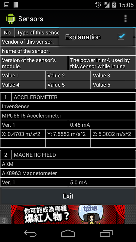 Show list of available Sensors, and sensor's values.