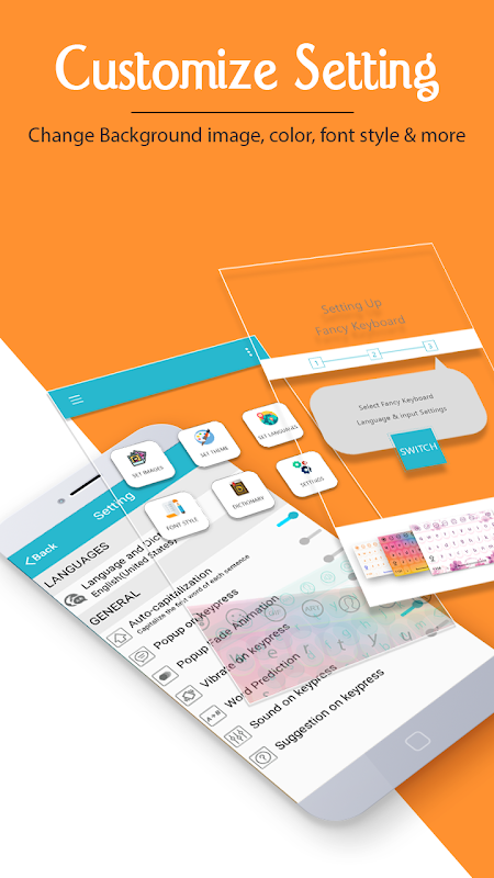 Kitty Keyboard is a free, customized keyboard for Android with cool fonts, 1200+ emoji, emoji arts, emoticons, personalized themes, auto correct input ,cool sticker ,Fancy Fonts and GIF Stickers & more.
