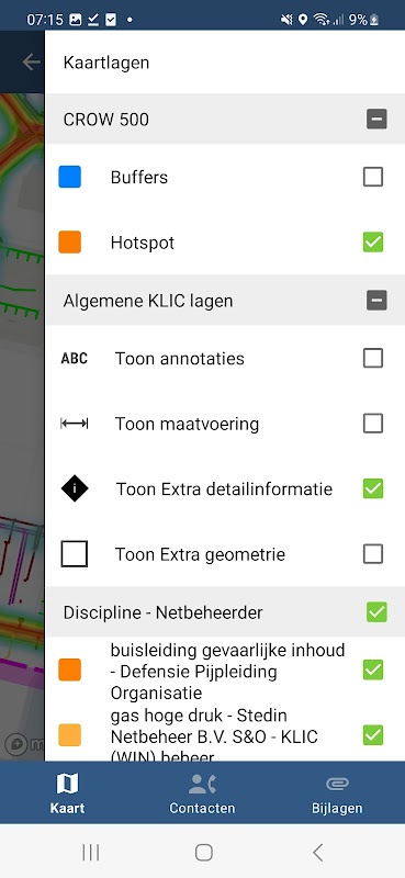 A major difference compared to the current Klic App is the fact that orientation reports can now also be viewed based on the vector format, making the map interactive, allowing you to view the details of the cables and pipelines. Furthermore, the sharpness of the cables and pipes is maintained when zooming in further in the map.