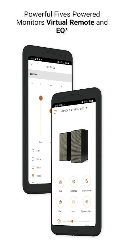 Virtual Remote Control and EQ features require the powered monitors be running the latest update. If you have not updated your Fives already, please download the free "Klipsch The Fives Updater" app. This will walk you through the update process. After the update is complete, all future updates will come through Klipsch Connect. Our Product Support team can walk you through the entire process. Simply reach out to us at: