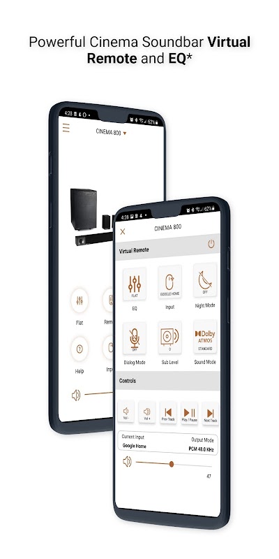 Soundbar and Powered Monitor products all support EQ and Virtual Remote Control. You can easily personalize your earphone experience by adjusting EQ, transparency, and ANC settings. You can install feature updates, troubleshoot common issues, contact product support - including in-app Live Chat, and much more.
