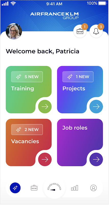 This app gives a glimpse of what a skills-based KLM could look like. Employees will be able to find suitable learning resources, projects and internal vacancies; the countless possibilities become visible.