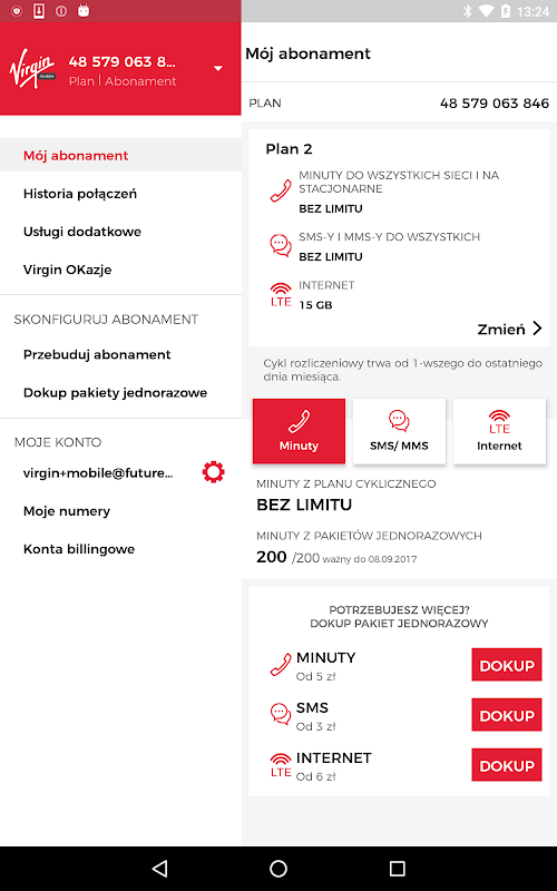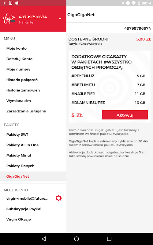 Virgin Mobile application gives you the opportunity to freely manage your offer. You can check the status of packages and activate new services. All the freedom that gives you Virgin Mobile dressed in a friendly and readable form of application. The "Klub Virgin Mobile" application is also adapted for users of the subscription offer.