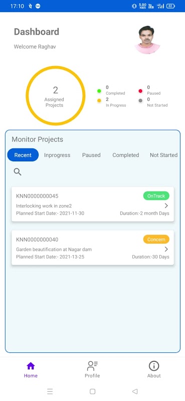 • Get detailed view of each project on Status, stage and other details of project, including past inspection reports, captured Issues/risk items along with actual pictures of work site.