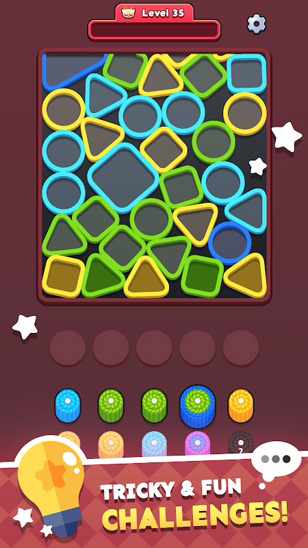 Knit & Patch is a unique knitting puzzle mixed with gravity physics. Simply tap to send matching wool coils to the empty dock spots, and enjoy watching a fancy feast of knitting visuals as the frames are being patched up by colorful threads! Keep patching up all the frames to remove them from the board and clear challenging levels.