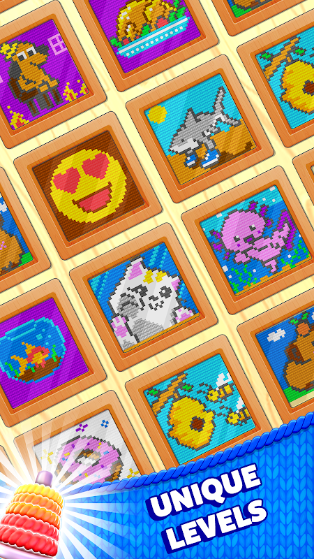 🎨 Create Yarn Art: Complete vibrant 2D yarn pictures as you progress through the game.