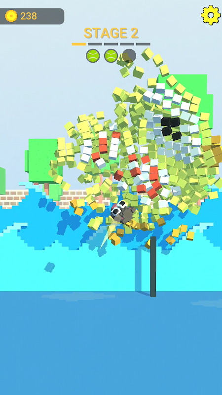 In each level you'll have 3 tries to blast the object a part and to progress to the next level