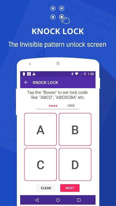 All you need to do is tap Knock Knock on the screen and unlock your device. MAGIC! The INVISIBLE Pattern Lock is a revolutionary application that unlocks your device without disclosing your Password.