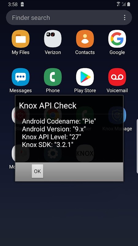 Simply provides the Samsung Knox API level and SDK version available on your device, if compatible.