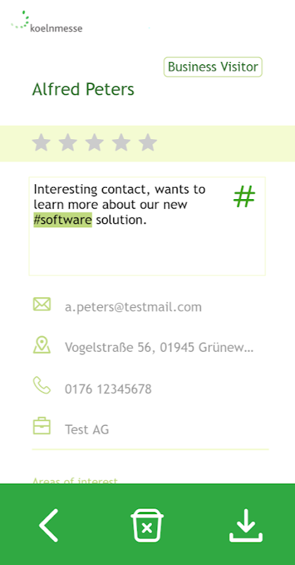 Koelnmesse Leadtracking enables you to record your visitor contact details.