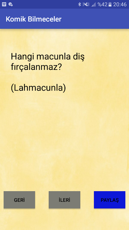 En Komik Bilmeceleri bu uygulamamızda bir arada bulabilirsiniz. Uygulamamız zaman içerisinde güncellenip bilmece sayısı arttırılacaktır.Sözlerimizi sosyal medyada durum olarak ayarlayabilirsiniz.