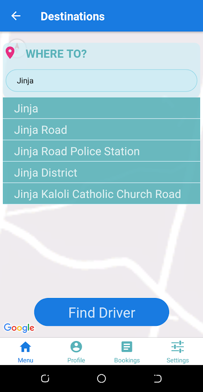 2. Set your destination e.g. Entebbe, Kampala, Jinja, Mbarara, Gulu etc
