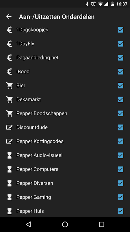 Zet aan of uit per aanbieder zodat je een mooi gepersonaliseerd overzicht krijgt van wat jou interesseert.