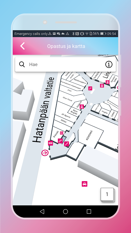 The Koskikeskus mobile service combines personal benefits with a real-time selection of stores and offers, as well as indoors guidance.