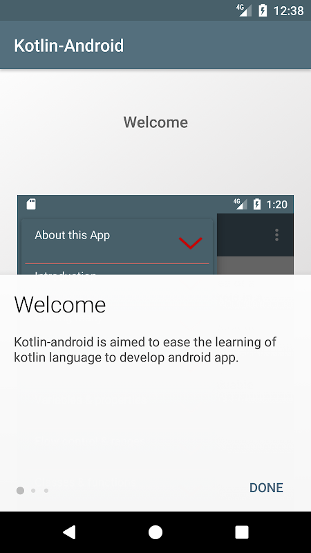 This App is developed with the idea of a complete kotlin reference on android in a handy way and, better understanding of the language.The initial version of this app will be offline but latter, I will add online update. I've tried to keep it simple and in concise and