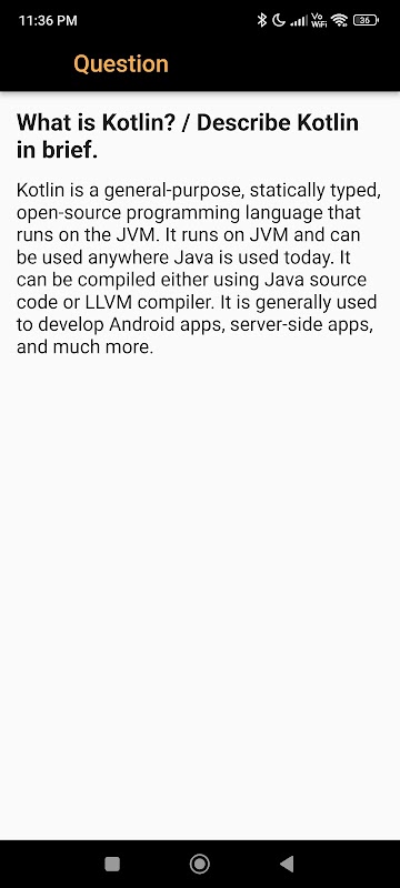 Kotlin Interview Questions: For those specifically interested in Kotlin, our app includes a dedicated section with over 100+ questions focused on Kotlin concepts. Deepen your knowledge and boost your confidence in Kotlin interview scenarios.