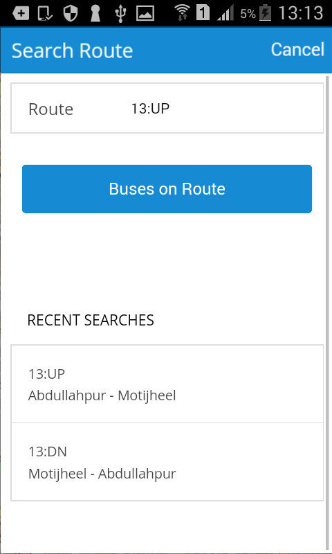 Users can also view all the buses operating on a particular route in real-time on map along with expected time of arrival (ETA).
