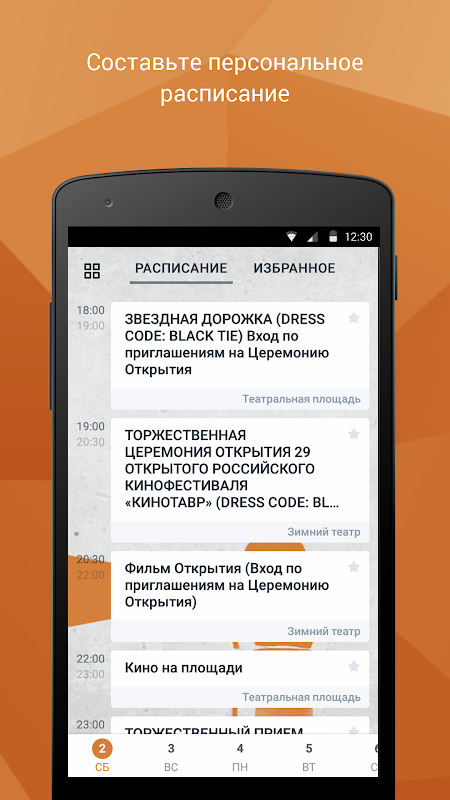 - составить собственную программу и получать оповещения о начале избранных выступлений;