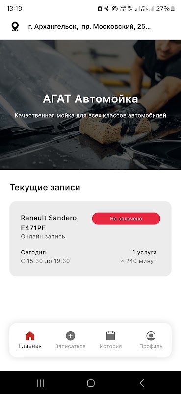 이 서비스는 세차장 Agat Arkhangelsk의 고객을 위해 특별히 고안되었습니다. 이 서비스를 통해 다음을 수행 할 수 있습니다.