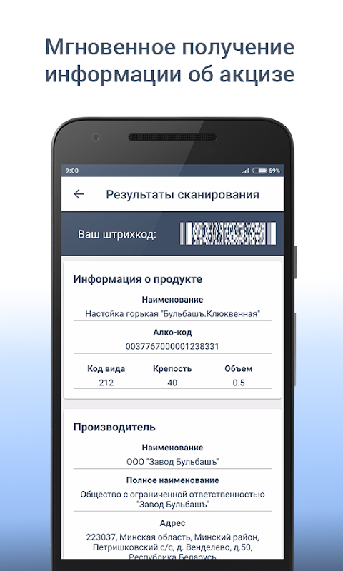 “Excise Control”애플리케이션은 소비세 스탬프를 확인하거나 EGAIS 시스템의 QR 코드로 발행 된 수표를 확인하여 주류 제품의 진위 여부를 결정합니다.
