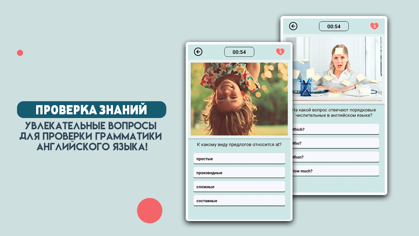 응용 프로그램 영어-퀴즈를 설치합니다. 테스트. Grammar 는 질문에 답하고, 정답을 추측하고, 새로운 지식을 습득하고 기억력을 훈련해야하는 재미있는 게임입니다!