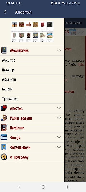 이 프로그램에는 연중 단식 날짜와 연중 매일의 사도가 포함된 정교회 달력도 포함되어 있습니다. 정교회 달력은 부활절에 따라 매년 이동식 공휴일과 단식을 자동으로 조정합니다.
